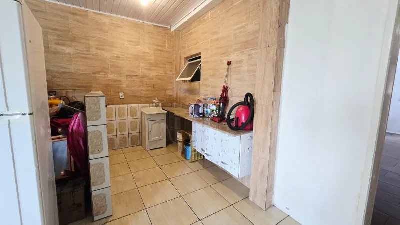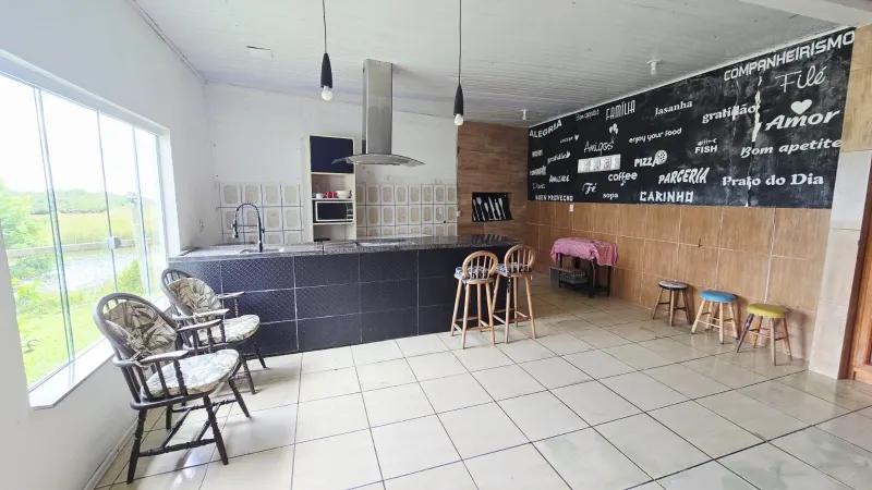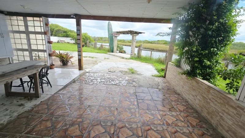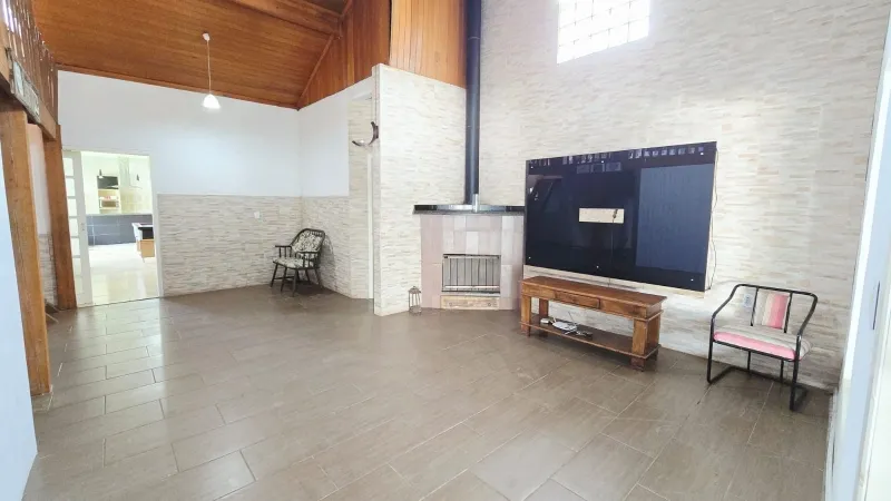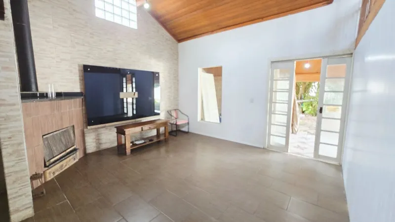 Residência em alvenaria com 3 dormitórios (1suíte com closet), banheiro social, sala de estar com lareira e mezanino, sala de jantar com espaço gourmet e área de jogos, abrigo para carro, churrasqueira, avarandado, depósito, amplo pátio gramado e arborizado, todo murado, fundo para lagoa, vista e contato com a natureza. Terreno com 340 m² e casa com 170 m².