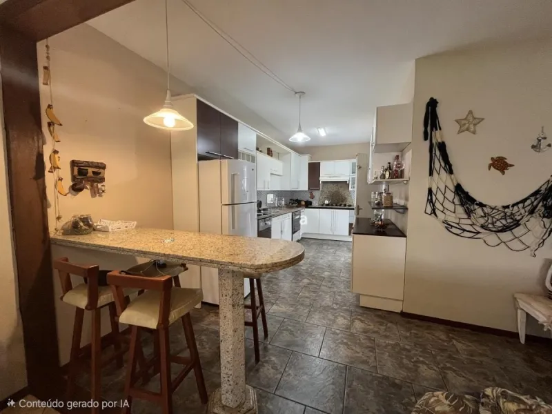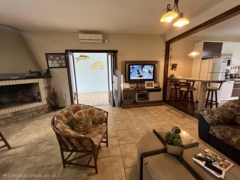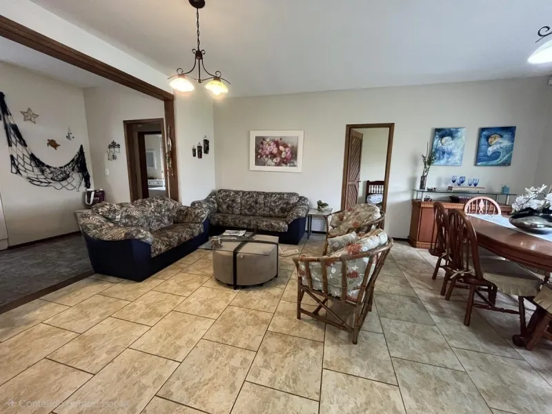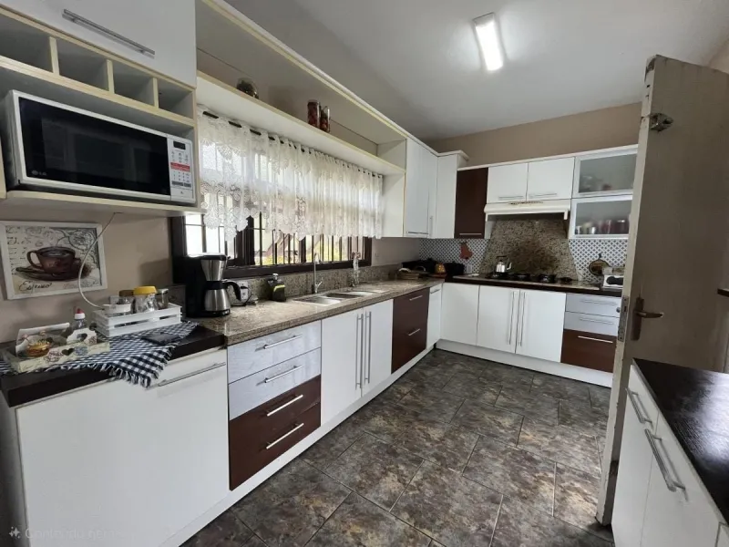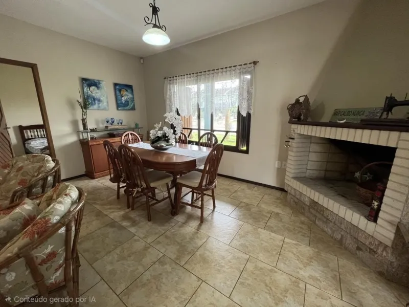 Residência em alvenaria com 3 dormitórios (1 suíte), banheiro social, sala com 2 ambientes, lareira, cozinha estilo americana, abrigo para carro. Anexo com 2 dormitórios, banheiro social, garagem para 2 carros, churrasqueira, área de serviço, toda com forro em laje, 228,57 m², esquadrias em madeira nobre, telha cerâmica, semi mobiliado, frente norte, cercado com tela.