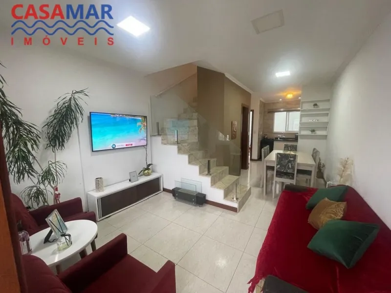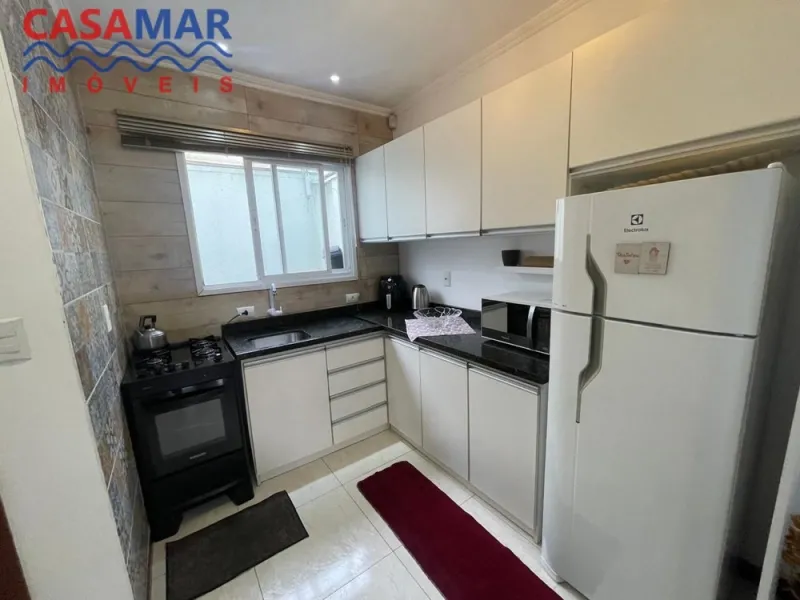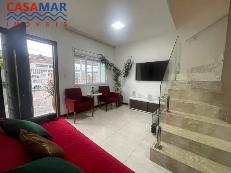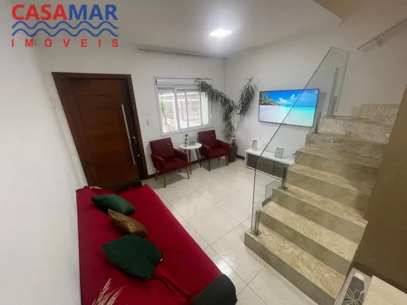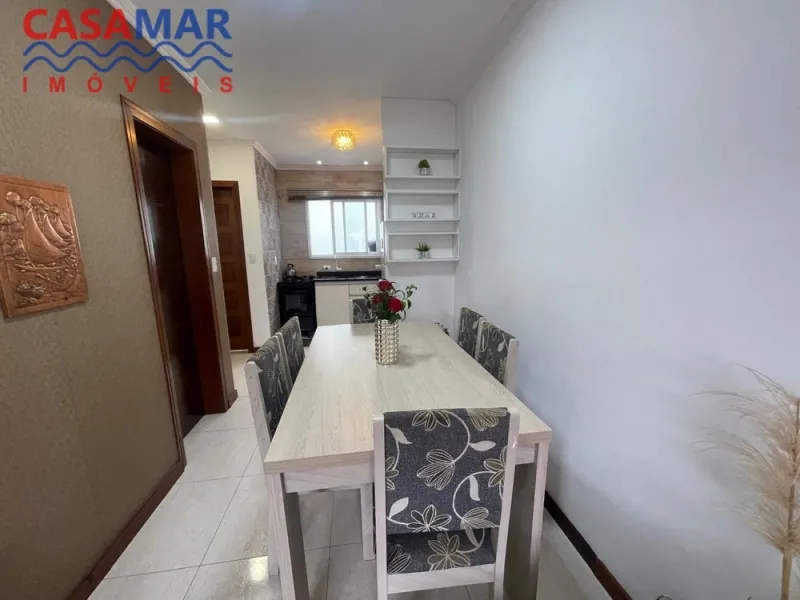 Ótimo sobrado bem localizado perto da plataforma marítima, composto por 2 dormitórios sendo um para o sol nascente e o outro com sacada para o pôr do sol,1 banheiro social, 1 lavabo, sala de estar e jantar, cozinha, área de serviço, decorado com móveis planejados e eletrodomésticos, churrasqueira, ar condicionado, sistema de alarme , vizinhos o ano todo. Imóvel com 85m2 privativos a 350 metros do mar.