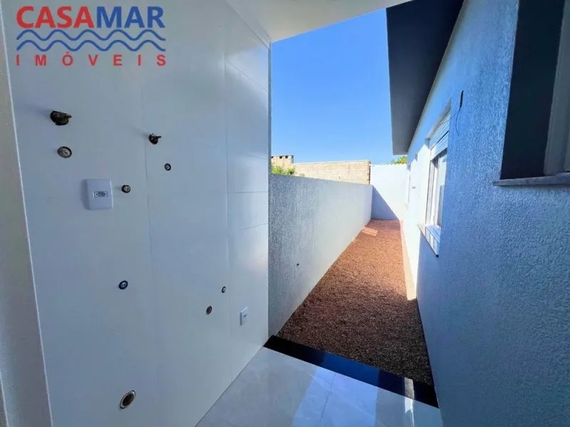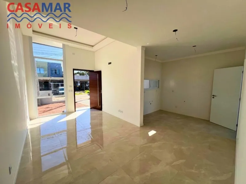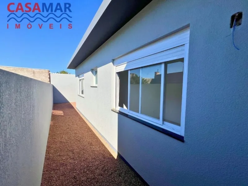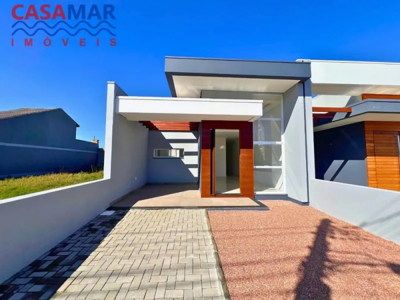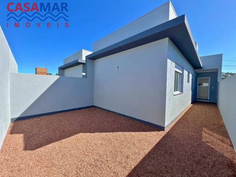 Linda casa geminada, nunca habitada composta por , 2 dormitórios (suíte), banheiro social, sala de estar com pé direito alto, sala de jantar integradas, cozinha, área de serviço, pátio frente e fundos.
