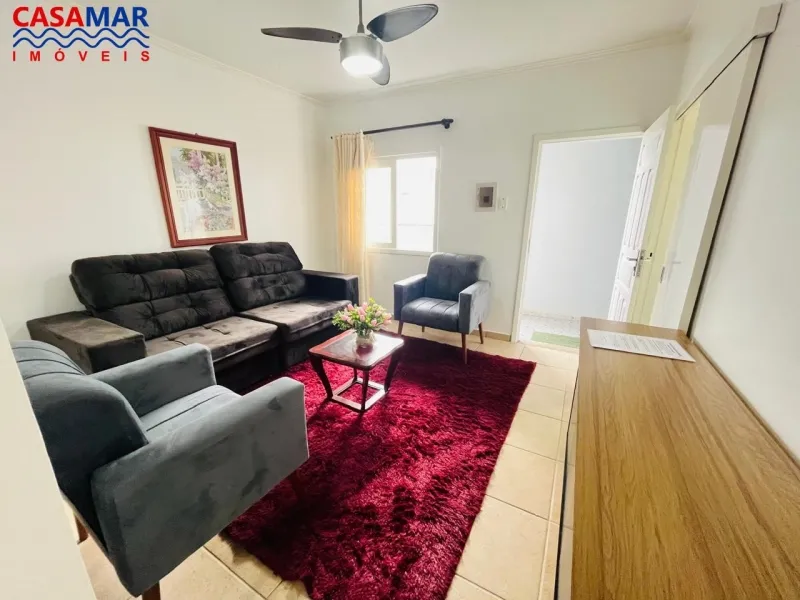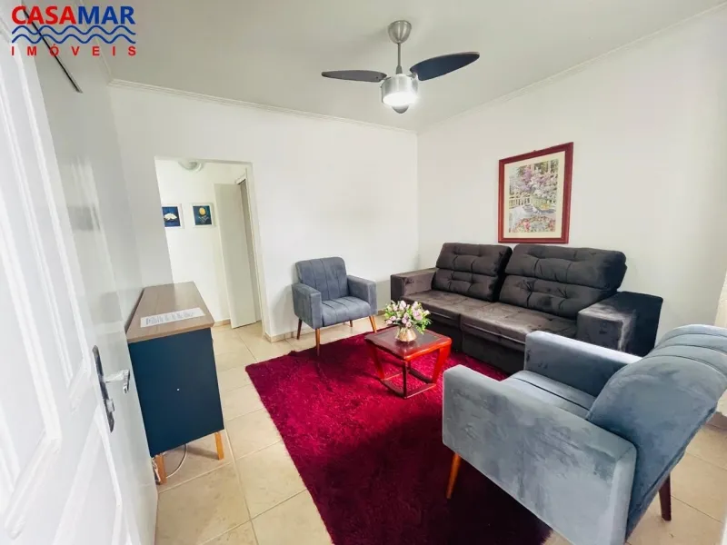 Ótimo apartamento mobiliado composto por 1 dormitório, 1 banheiro social, cozinha, sala estar e jantar, vista para o mar. Prédio conta área de serviço e salão de festas.