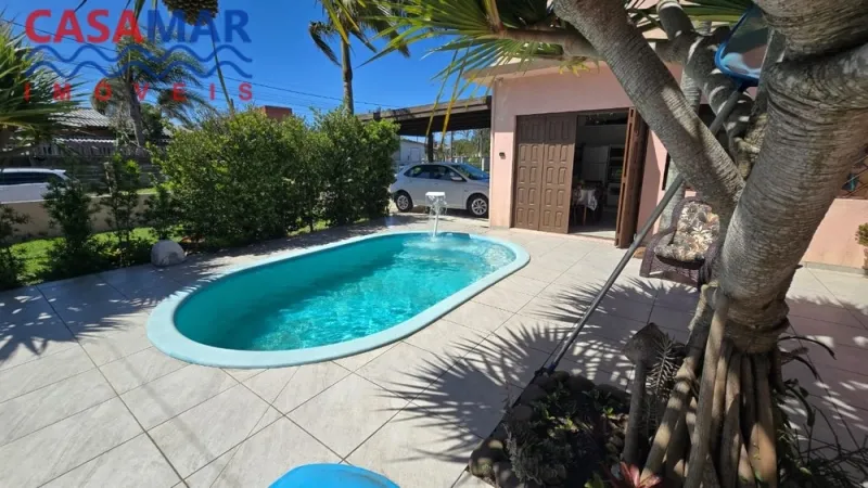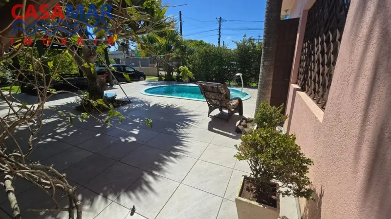 Linda casa com piscina, 2 terrenos, composta por, 6 dormitórios ( suíte), 2 banheiros sociais, sala com lareira, sala íntima, cozinha, lavanderia, avarandado na lateral da casa, espaço gourmet com churrasqueira, garagem para carro. Área externa com pergolado e jardim. Excelente para morar e veranear com sua família.