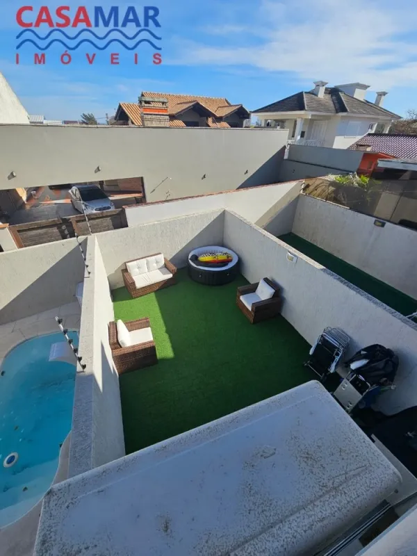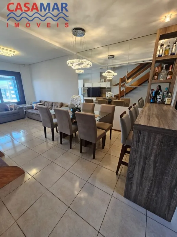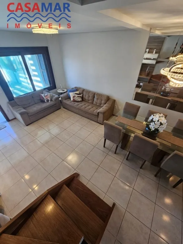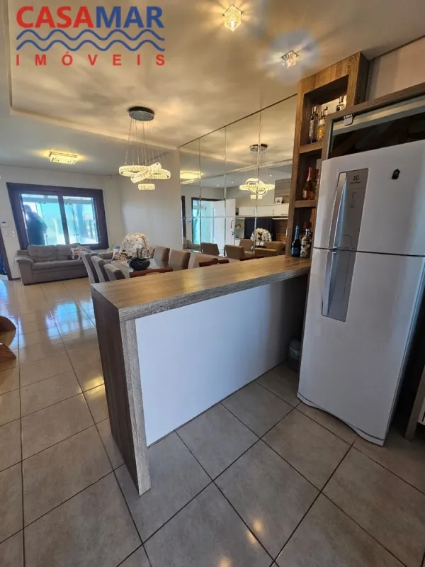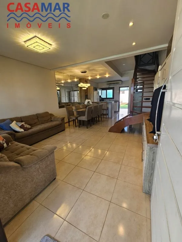 Excelente sobrado na Beira Mar composto por 3 dormitórios, sendo 1 suíte, banheiro social, cozinha com móveis planejados, espaço gourmet com churrasqueira, living integrado com 2 ambientes, estar e jantar, ar condicionado em todos os cômodos, água quente, todo em laje de concreto, totalmente mobiliado, área de serviço, bem ventilado e ensolarado, abrigo coberto para carro + 1 descoberto, pergolado, espaço frente e fundos. ótimo para morar e veranear.