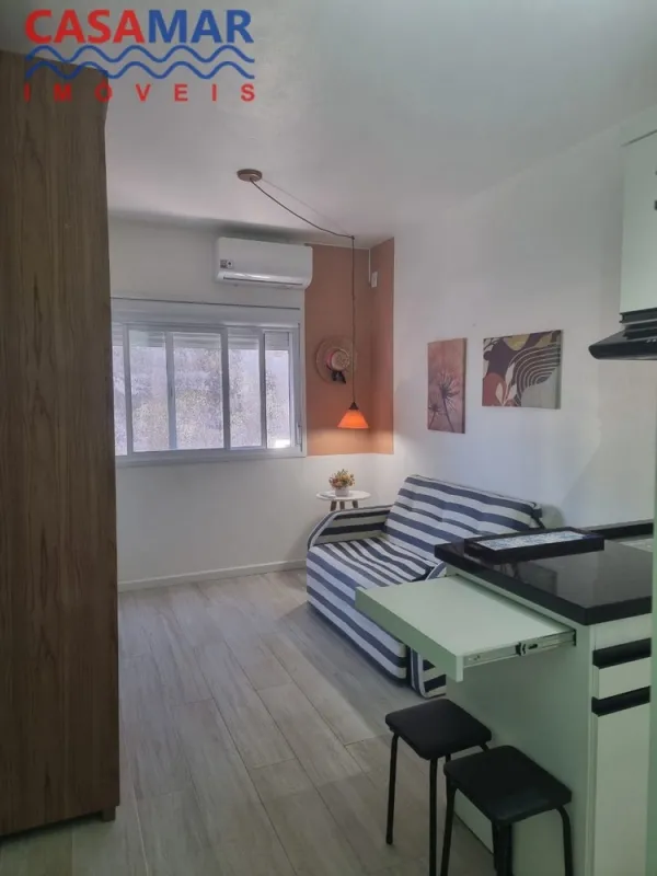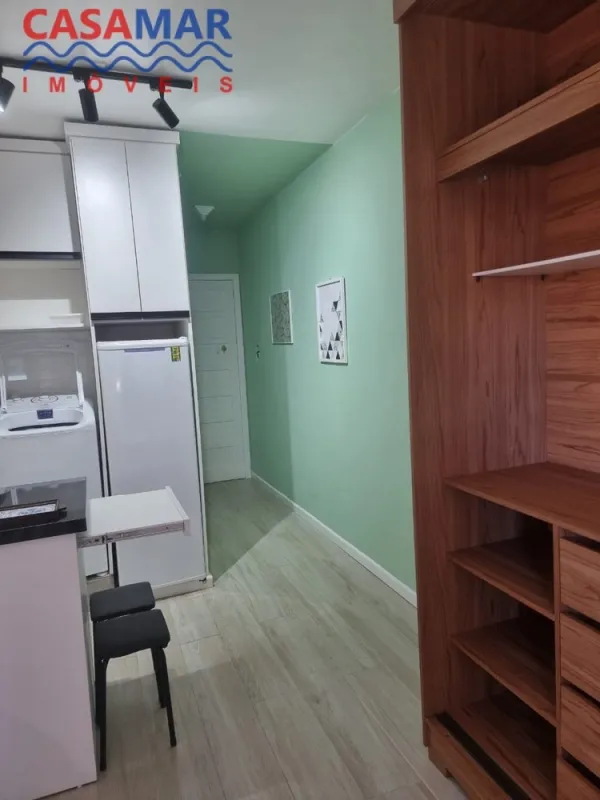 Ótimo JK mobiliado com móveis sob medida, banheiro social, cozinha, ar condicionado. Prédio com salão de festas. ótimo para morar e perto de todas as comodidades.