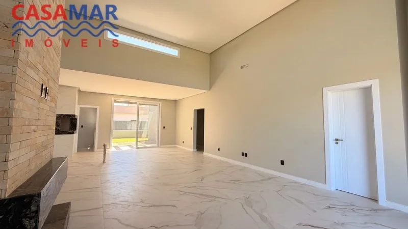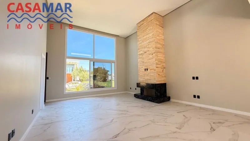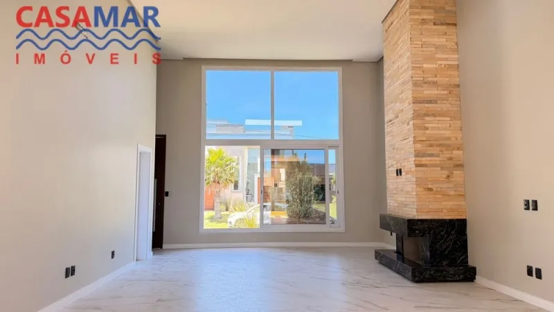 Linda casa em condomínio composta por 3 suítes, 1 banheiro social externo, 1 lavabo, living com pé direito alto, cozinha, sala de estar e jantar, área de serviço, churrasqueira, lareira, espera para Split em todos os ambientes, água quente, porta de entrada com reconhecimento facial, esquadrias automatizadas e garagem para 2 carros. Condomínio conta com uma excelente estrutura, salões de festas, pisciana, academia, portaria 24 horas, quadra esportiva entre outros.