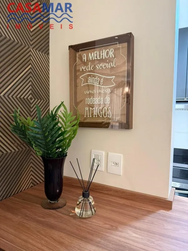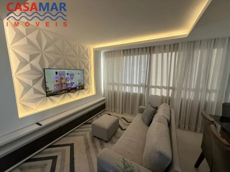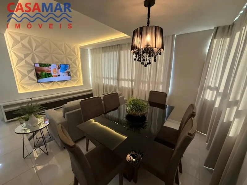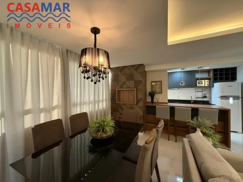 Excelente apartamento perto do mar mobiliado e decorado, composto por 2 dormitórios, sendo 1 suíte, banheiro social, sala de estar e jantar, cozinha, churrasqueira, área de serviço, box para 1 carro.