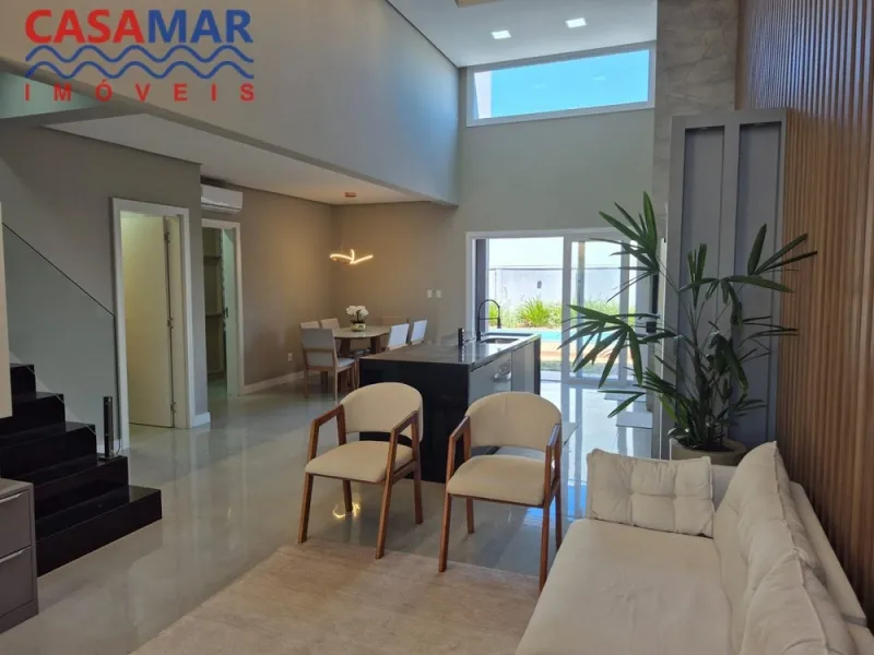 Lindo sobrado mobiliado e decorado composto por 3 suítes com closet, sendo uma suíte térrea, lavabo, sala de estar e jantar, cozinha planejada com churrasqueira, piscina , paisagismo e garagem. Ótima localização.
