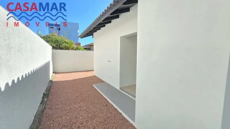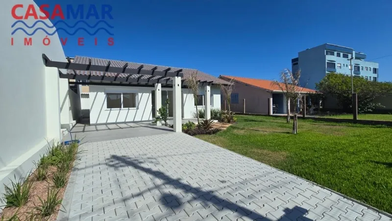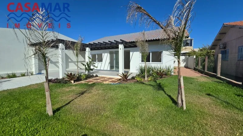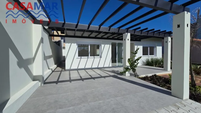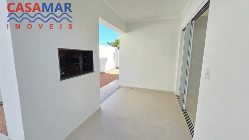 Excelente casa em alvenaria toda em laje, rebaixe em gesso, porcelanato, composta por 3 dormitórios, sendo 1 suíte, sala de estar e jantar, cozinha, área de serviço, churrasqueira, pergolado e jardim. Próximo do mar com ótima orientação solar frente leste.