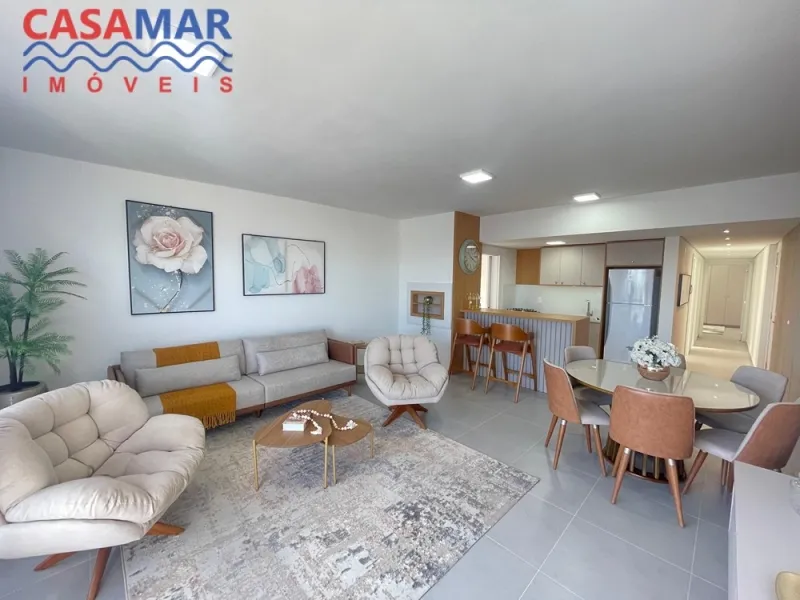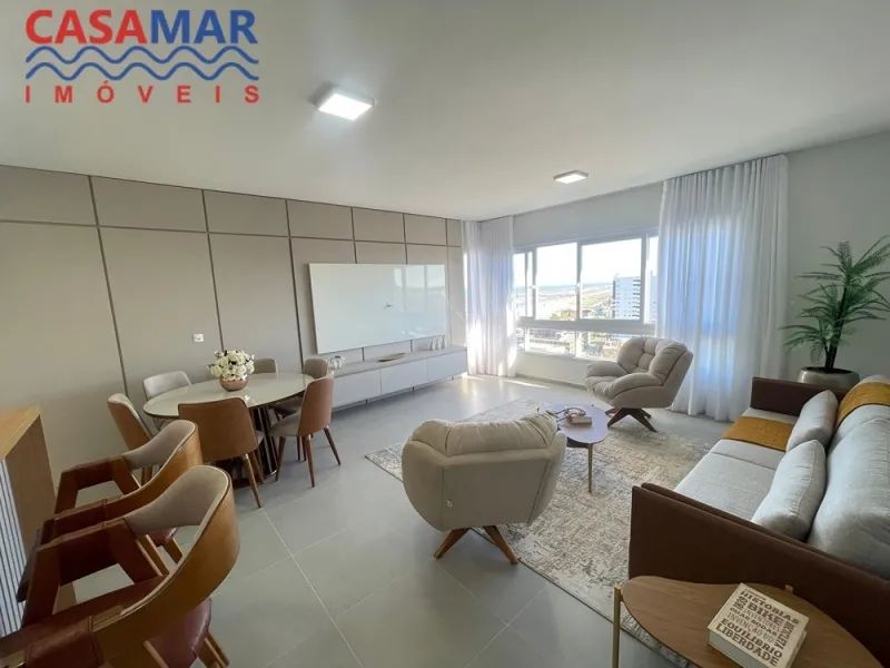 Apartamento mobiliado e decorado com vista para o mar, composto por, 3 dormitórios, sendo 1 suíte, banheiro social, sala de estar e jantar, cozinha, área de serviço, churrasqueira e 2 vagas de garagem. Prédio com ótima infraestrutura e a poucos passos do mar.