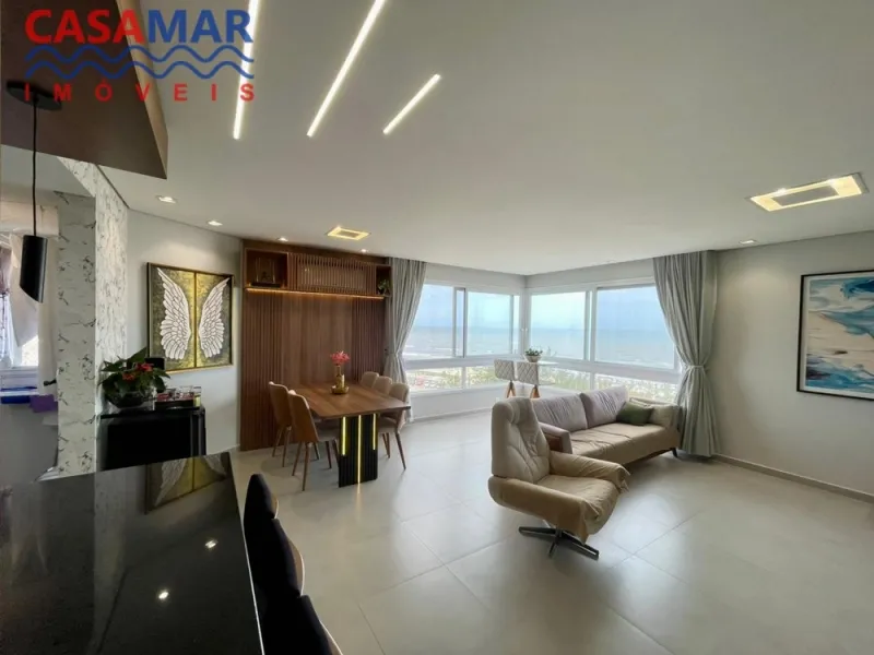 Apartamento em andar alto com vista eterna para o mar, composto por, 3 dormitórios, sendo 1 suíte, closet, banheiro social, lavabo, mobiliado e decorado, sala de estar e jantar, cozinha, área de serviço, churrasqueira e 2 vagas de garagem. Prédio com salão de festas, sala de cinema, sala de jogos, brinquedoteca, espaço pet, piscina externa e academia.