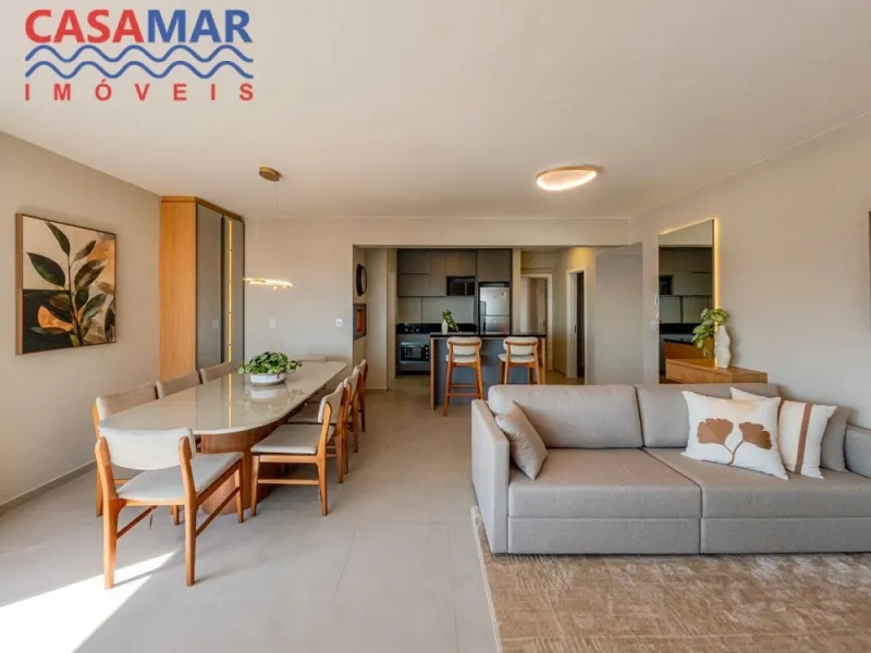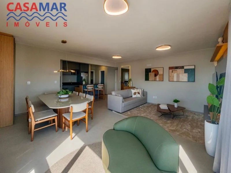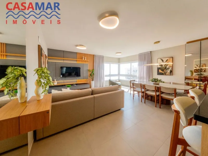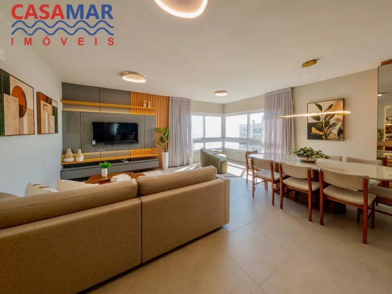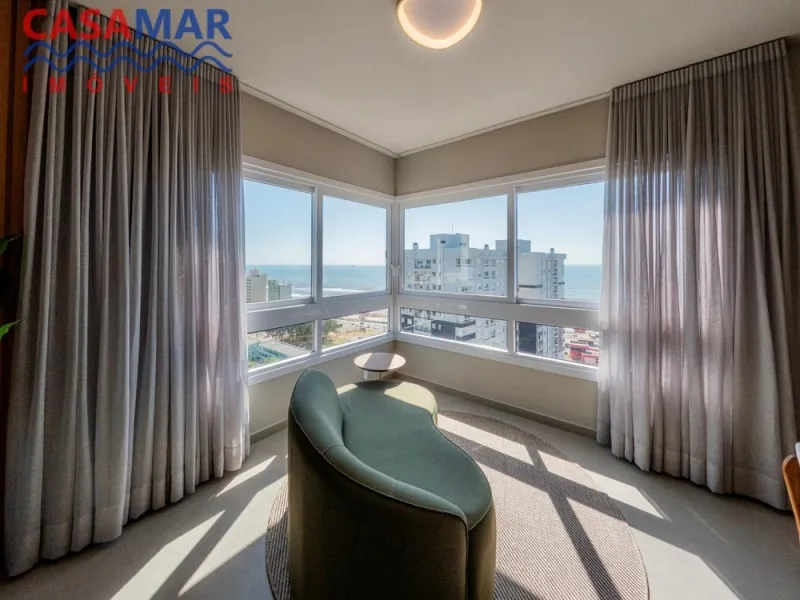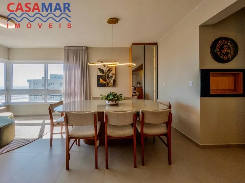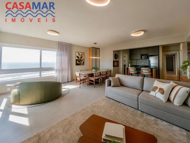 Excelente apartamento perto do mar com uma vista incrível composto por, 3 dormitórios, sendo 1 suíte, banheiro social, lavabo, sala de estar e jantar, cozinha com churrasqueira, área de serviço, mobiliado e decorado e uma ótima orientação solar norte e leste. Prédio com salão de festas com terraço.