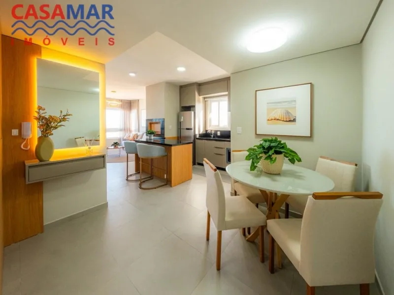 Apartamento mobiliado e decorado com linda vista para o mar composto por , 2 dormitórios, sendo 1 suíte, banheiro social, sala de estar e jantar, cozinha com churrasqueira , área de serviço, box para carro e uma ótima orientação solar. Prédio novo com 2 elevadores, salão de festas, hall de estrada decorado. Perfeito para morar e veranear !