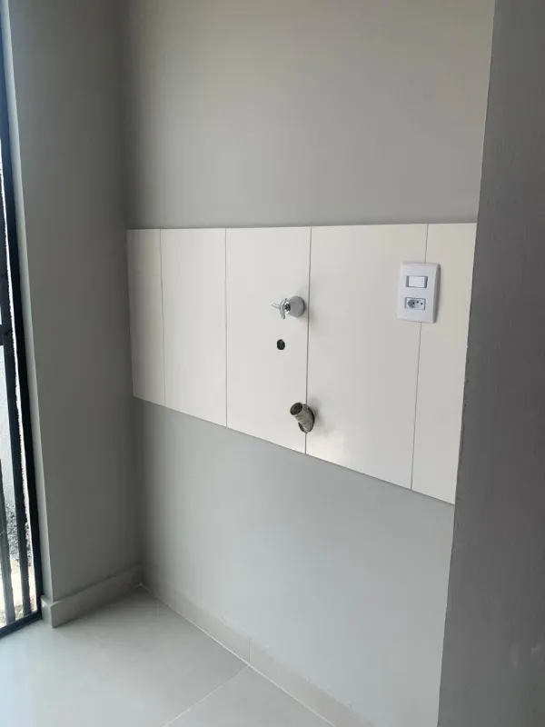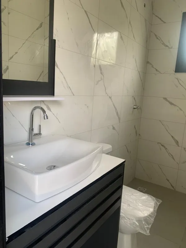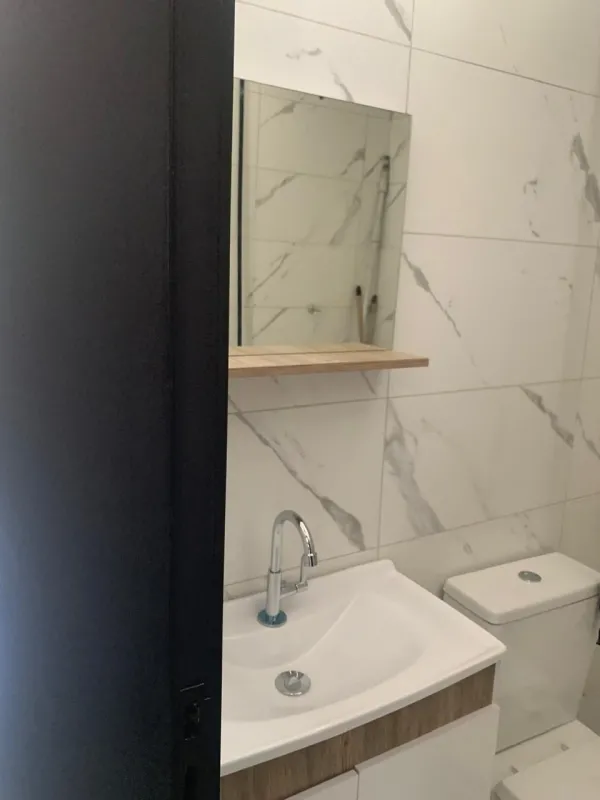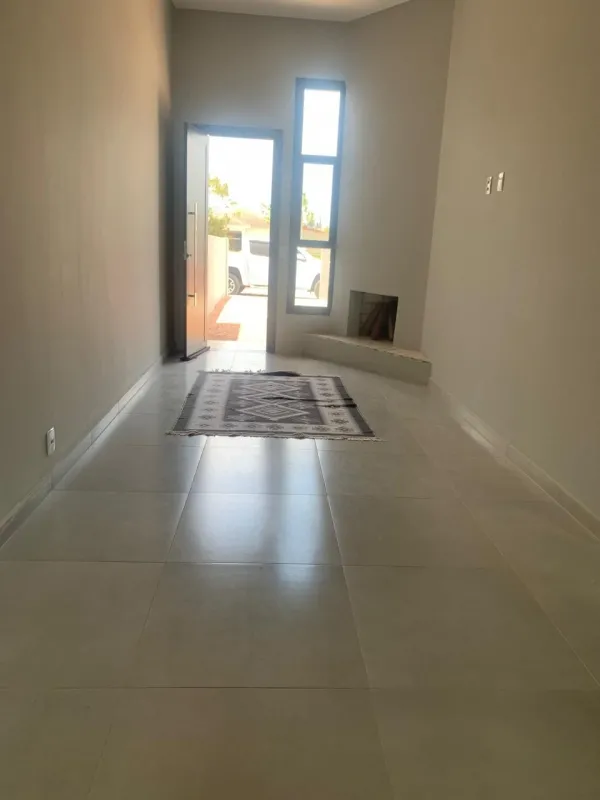 Casa geminada nova com 2 dormitórios (1 suíte), banheiro social, sala ampla com lareira, cozinha estilo americana, área de serviço, pátio