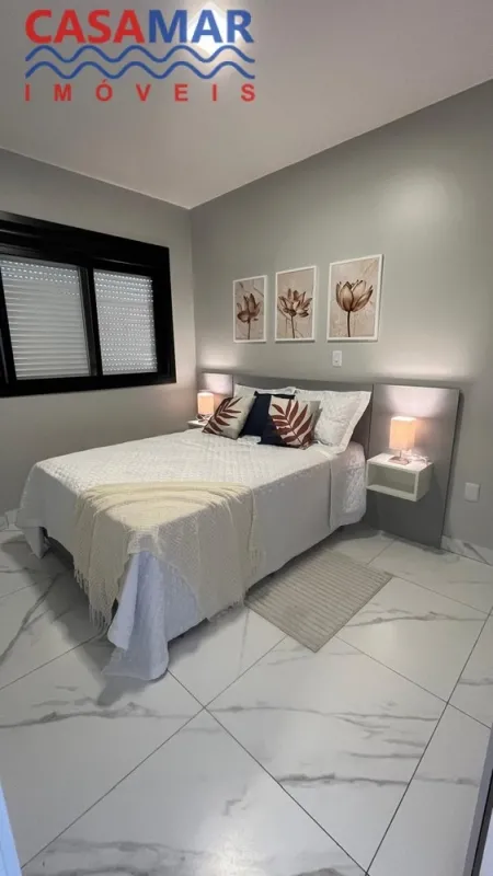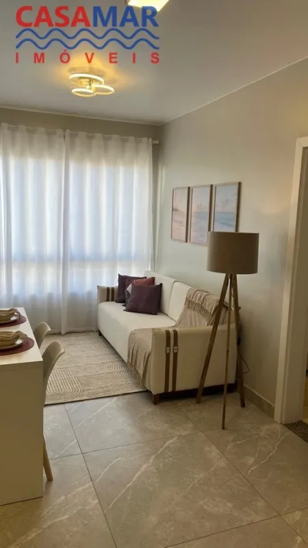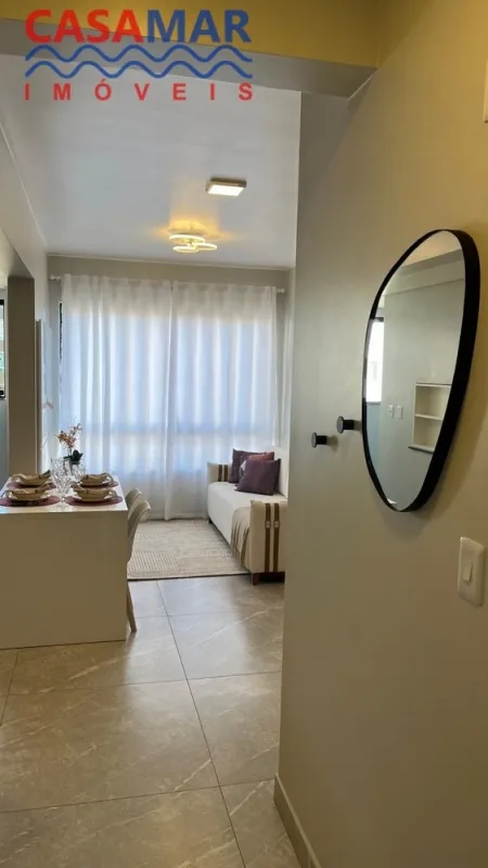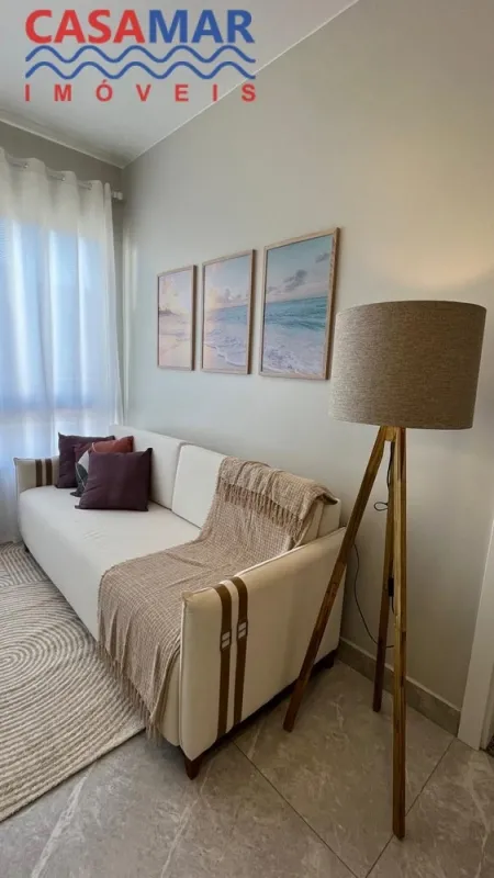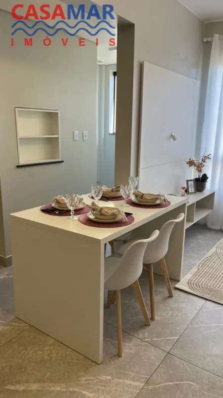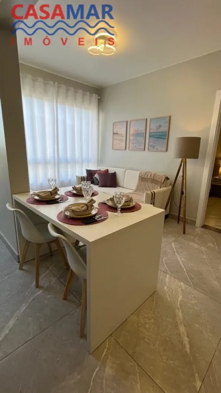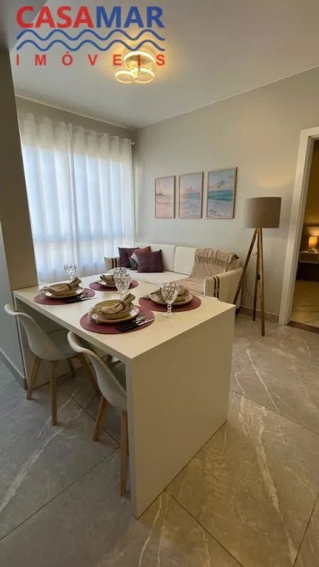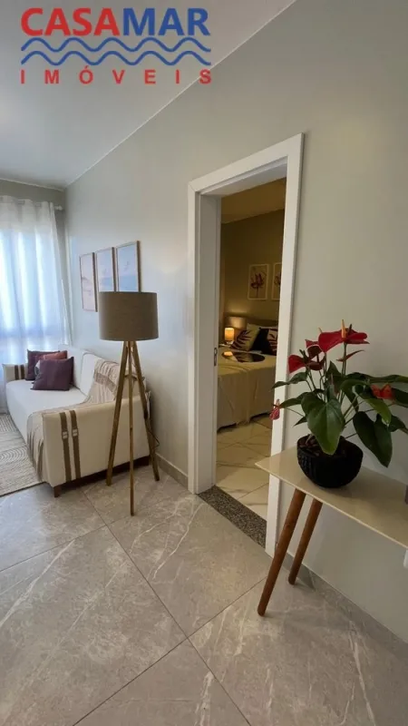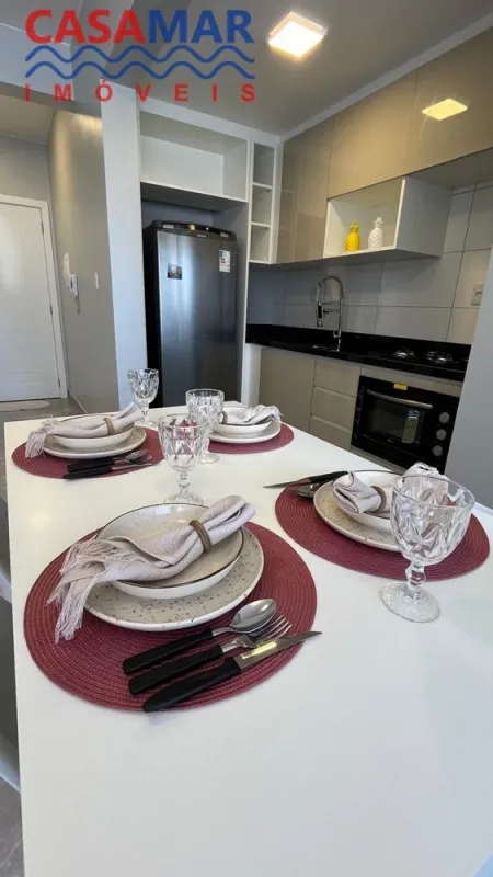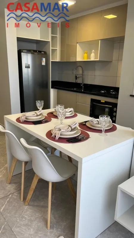 Excelente apartamento mobiliado e decorado, próximo do mar composto por 1 dormitório, banheiro social, sala estar e jantar com cozinha integrada, churrasqueira, área de serviço e vaga para carro. Prédio novo com elevador.
