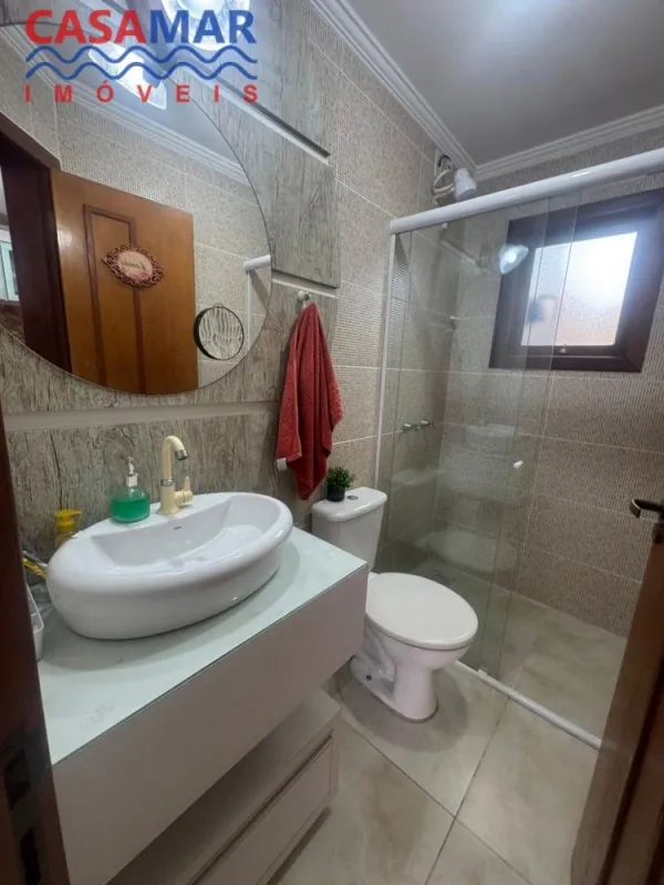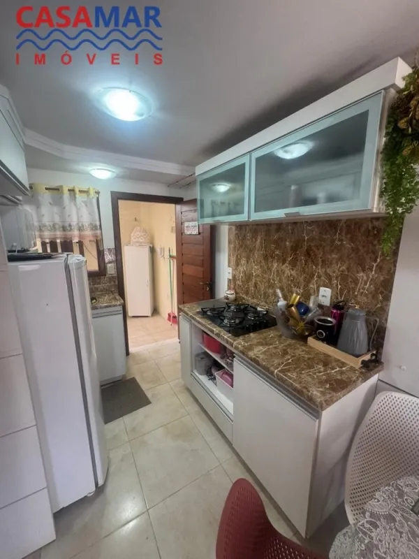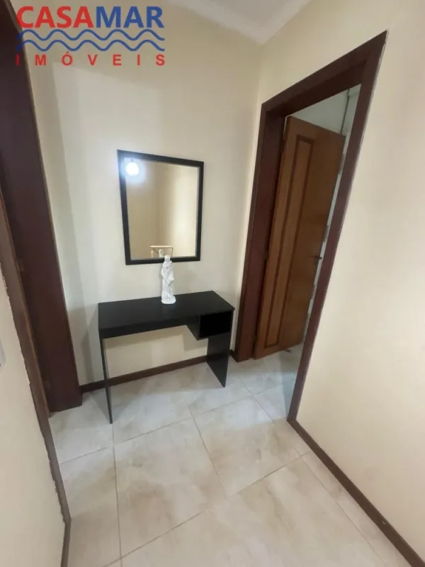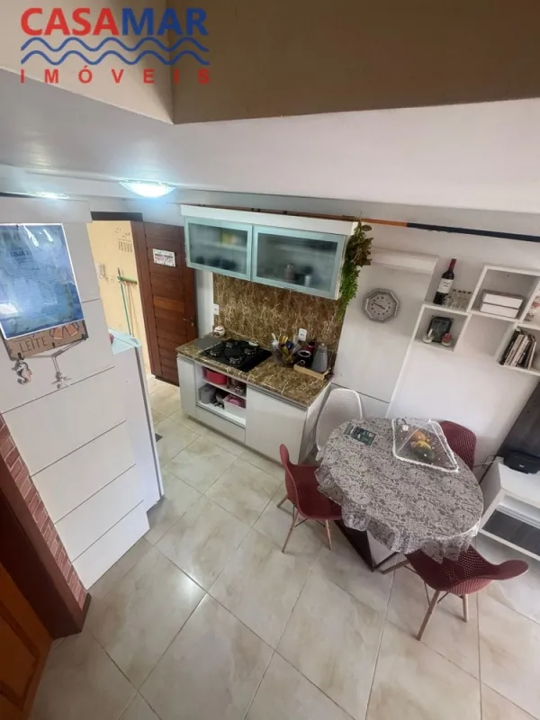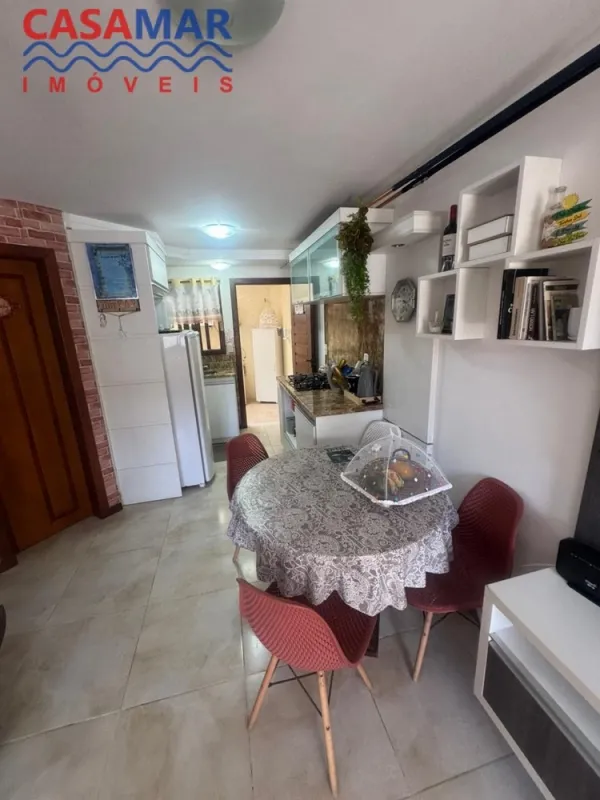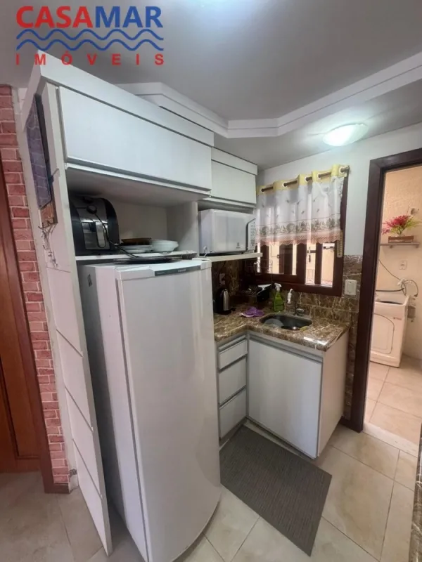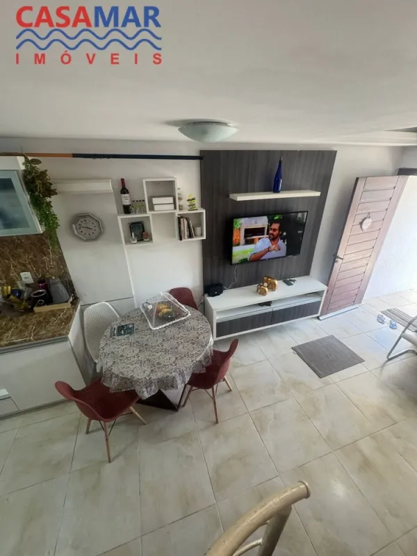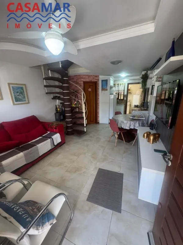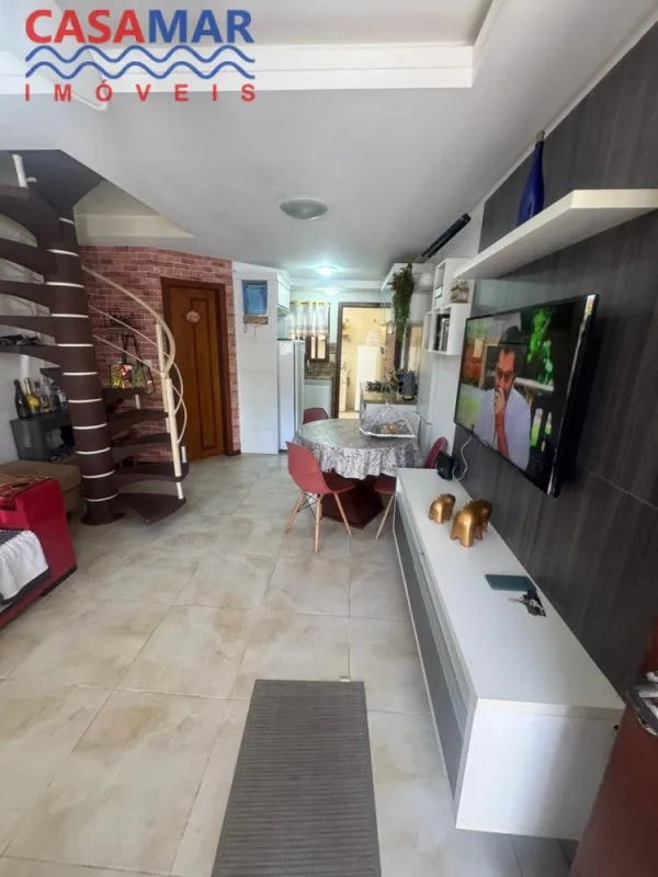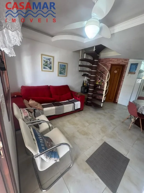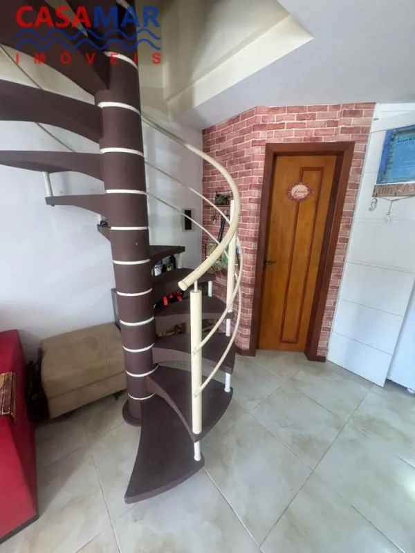Duplex no centro mobiliado composto por 2 suítes, lavabo, sala estar e jantar, cozinha, área de serviço com churrasqueira, vaga para 1 carro. Perto do mar e centro.