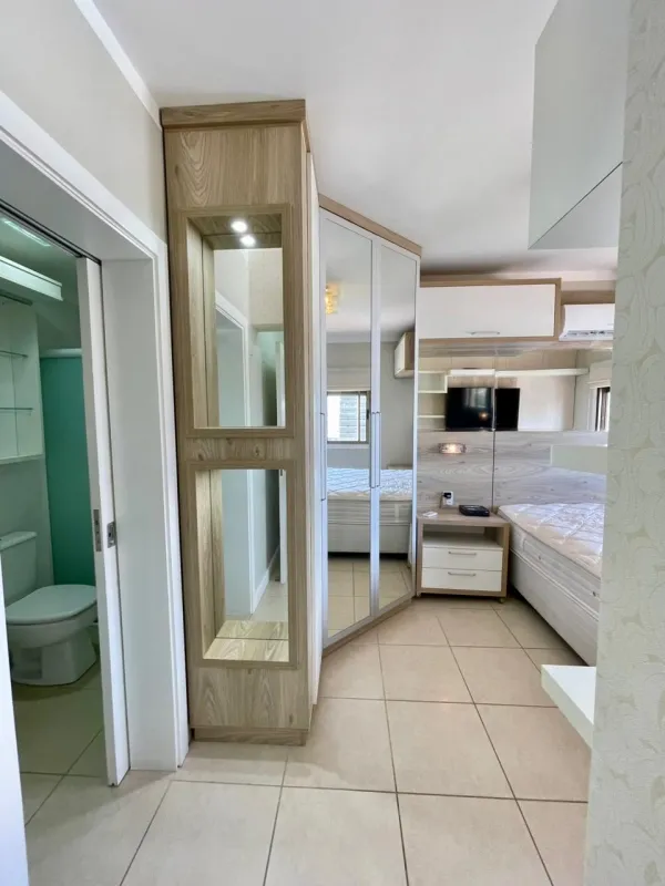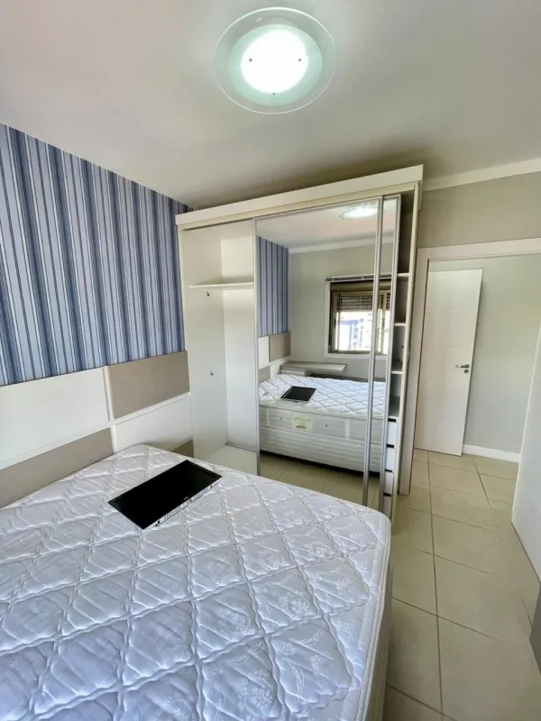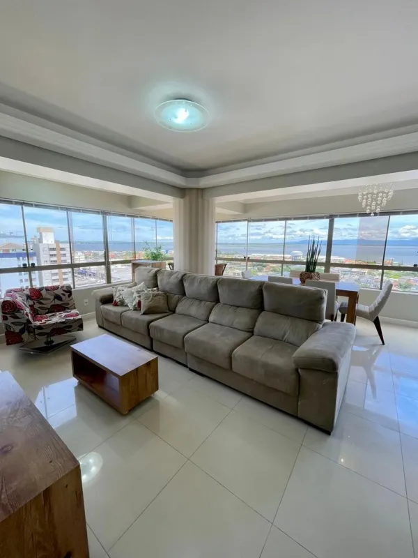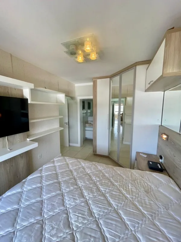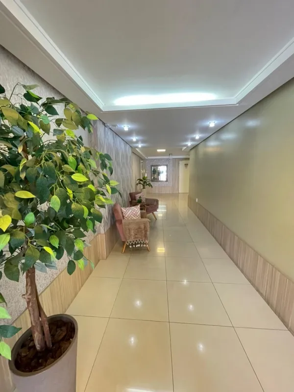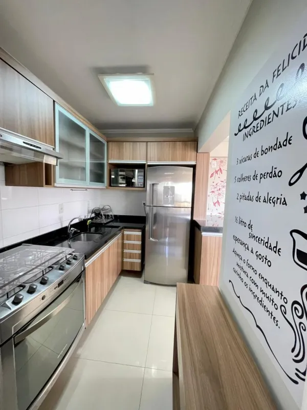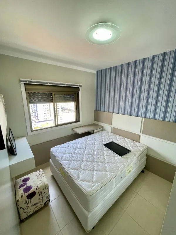 Apartamento amplo com 3 dormitórios (1 suíte), banheiro social, ampla sala com 2 ambientes, cozinha estilo americana, área de serviço, sacada com vista panorâmica, churrasqueira, mobiliado, ar condicionado, água quente, andar alto, estacionamento para 2 carros. Edifício com gás central, elevador, salão de festas . Central junto a todo comercio, bancos, restaurantes, farmácia e escola.