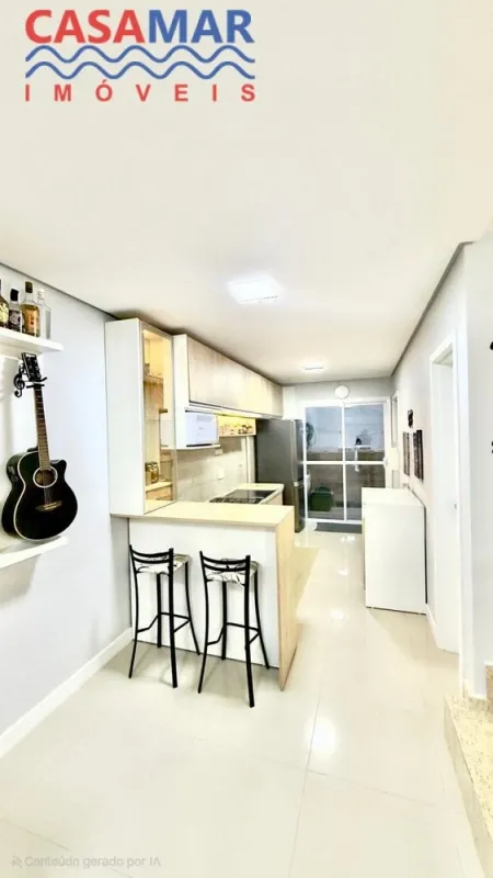 Excelente duplex composto por 2 suítes, uma delas com closet e sacada, lavabo, ampla sala de estar e jantar, cozinha, área de serviço, semimobiliado, churrasqueira, vaga para 1 carro e ótima orientação solar.